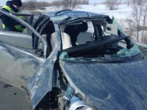 На трассе «Оренбург – Орск» опрокинулся автомобиль Nissan