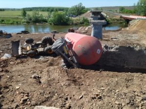 В Октябрьском районе Оренбургской области около ремонтируемого моста через реку Салмыш произошло дорожно-транспортное происшествие с участием большегруза. 53-летний водитель, управляя автомобилем МАN с полуприцепом цистерной, двигаясь со стороны Уфы в сторону Оренбурга, не справился с управлением и врезался в передвижной заградительный знак с импульсной стрелкой и железобетонные блоки. Далее столкнулся со стоящим в месте...