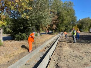 В саду Орской теплоэлектроцентрали обустраивают тротуар