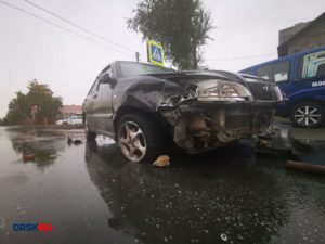 В Орске Chery снёс ограждение после столкновения с KIA