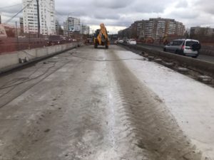 На стороне путепровода, по которой осуществляется въезд в город, завершен этап работ по восстановлению двух внешних полос. Здесь уложили выравнивающий слой из бетона, выполнили монтаж цоколей для барьерного и перильного ограждений, смонтировали барьерное ограждение, завершили работы по гидроизоляции и укладке защитного слоя, бетонированию шкафных стенок. Подрядчик приступает к ремонту центральной внутренней части путепровода. Сегодня...