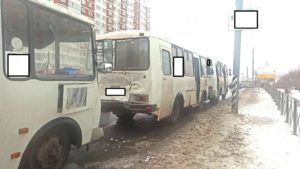 В Оренбурге на проспекте Победы столкнулись три автобуса