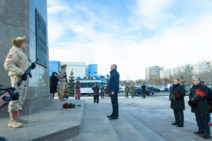 Губернатор Денис Паслер возложил цветы к памятнику Герою России Александру Прохоренко