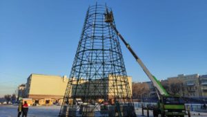 На центральной площади Оренбурга начали установку главной городской ёлки