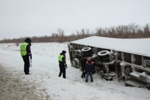 В Соль-Илецком округе сотрудники ДПС помогли вытащить застрявшую в снегу фуру
