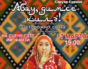 17 марта Салаватский государственный башкирский драматический театр представит в Оренбурге музыкальную комедию «Осторожно, сваха!». Главная героиня постановки – сваха Амина не утратила своей красоты, женской мудрости и жизнелюбия. Она подыскивает овдовевшему богачу Рифу подходящего зятя. В увлекательный круговорот событий также вовлечены дочери хозяина дома, женихи и многие жители деревни, которая превращается для всех героев...