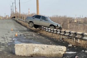 В Орске «десятка» повисла на ограждении Никельского путепровода