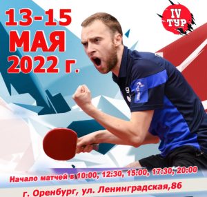С 13 по 15 мая в оренбургском Центре настольного тенниса России пройдёт заключительный, четвёртый, тур регулярного чемпионата страны среди мужских клубов Премьер-лиги сезона 2021-2022 годов. Этот тур «большой» — все 12 команд-участниц, которые в третьем туре были поделены на две группы, в Оренбурге сыграют друг с другом «стенка на стенку» (команды первой подгруппы с...