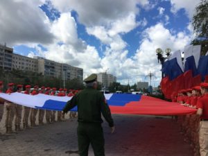 В Оренбурге юнармейцы развернули огромный российский флаг