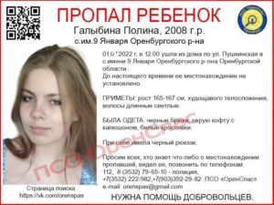 В Оренбургском районе пропала 14-летняя Полина Галыбина