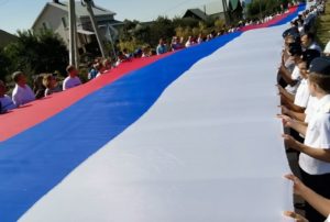 В Оренбургском районе развернули флаг России длиной 1300 метров