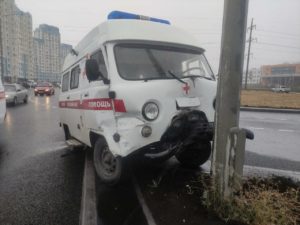 Автомобиль скорой помощи наехал на столб. 68-летняя фельдшер была доставлена в больницу с различными травмами...