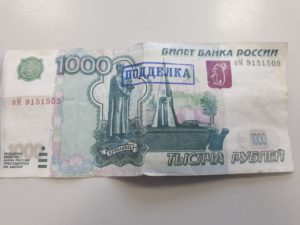 В Оренбурге обнаружили фальшивую тысячерублёвую купюру