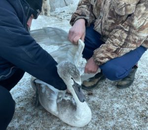 В Абдулинском городском округе спасли замерзавшего на реке лебедя