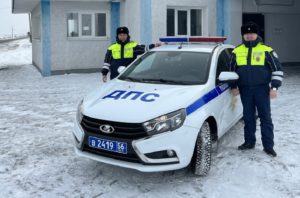 Под Новотроицком инспекторы ДПС помогли водителю и пассажирам выбраться из снежного плена