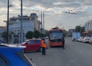 В центре Оренбурга падение опоры контактной сети спровоцировало ДТП