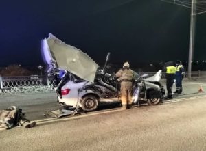 Авария произошла 11 декабря около 20.29 на улице Донгузской областного центра. Водитель автомобиля LADA Vesta не справился с управлением и допустил столкновение с движущимся в попутном направлении грузовиком Shacman, который буксировался. Двое пассажиров легкового автомобиля от полученных травм скончались на месте, водитель госпитализирован в тяжёлом состоянии. Фото: УМВД России по Оренбургской области...