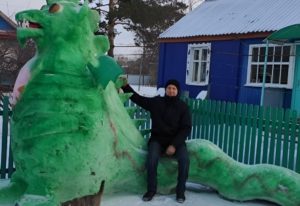 Жители села Чулпан Кувандыкского округа соорудили из снега большого дракона