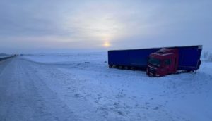 В Соль-Илецком округе из кювета достали съехавшую с трассы фуру