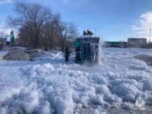 Сообщение о возгорании вендинговой автозаправки (мини-АЗС самообслуживания) на улице Беляевской пожарные получили в 12.25. На место незамедлительно прибыли 4 боевых расчёта и служба пожаротушения ГУ МЧС России по Оренбургской области. В 12.49 возгорание полностью ликвидировали. Сотрудники МЧС России использовали для тушения пену. Причина пожара устанавливается. Фото: ГУ МЧС России по Оренбургской области...