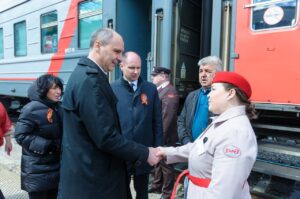 Дому-музею Гагариных передали знамя Победы с подписями оренбургских ветеранов, побывавшего в космосе. Активисты Константин и Елена Хитровы попросили космонавта Олега Артемьева отправить знамя Победы в космос вместе с посылкой для Сергей Прокопьева. В августе 2023 года знамя было отправилось на орбиту и вернулось на Землю в сентябре. Подпись на знамени оставила почётный гость музея...