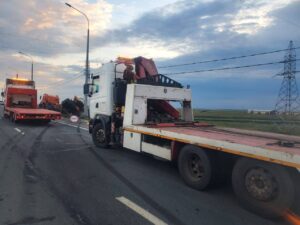 Авария произошла на 37-м километре трассы «Казань – Оренбург – Акбулак — граница с Республикой Казахстан». Столкнулись два грузовика, после чего автомобиль, перевозивший газовый баллон, опрокинулся. В связи с локализацией утечки газа было перекрыто движение с 37-го по 45-й километр дороги. UPD. В 23.15 движение транспорта на данном участке дороги восстановлено. Фото: пресс-служба УМВД...