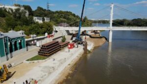 На набережной Урала в Оренбурге устанавливают шпунты для усиления подпорной стены