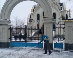 Накануне Рождества в Оренбурге очистили от снега территории возле храмов