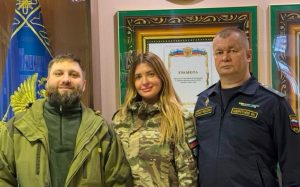 В Оренбурге приставы подарили пуховый платок офицеру с позывным «Белка»