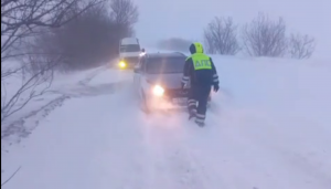 Утром на заметённом снегом участке автодороги «Бугуруслан — Старокутлумбетьево» образовалась пробка. Здесь застряли порядка 15 автомобилей. На место выехал экипаж дорожно-патрульной службы ОГИБДД. Регулируя движение, инспекторы помогли водителям проехать опасный участок. Многие машины пришлось выталкивать из снега. На место происшествия была направлена специальная дорожная техника. Фото: пресс-служба УМВД России по Оренбургской области...