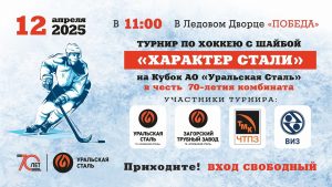 Комбинат «Уральская Сталь» (с Загорским трубным заводом входит в группу компаний «Уральская Сталь») организует турнир по хоккею между любительскими командами. Турнир будет проведен четвертый год подряд, в этот раз пройдёт под эгидой празднования 70-летия предприятия. Торжественное открытие состоится 12 апреля в 11:00 на площадке Ледового дворца «Победа». Между собой сыграют команды новотроицких металлургов «Уральская...