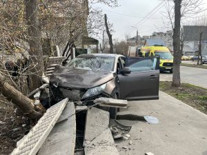 В Оренбурге автомобиль KIA снёс забор и врезался в дерево
