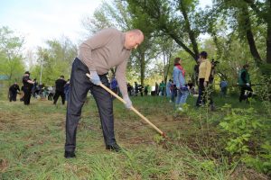 Евгений Солнцев вышел на большой субботник в Зауральной роще Оренбурга