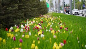 На улицах Оренбурга расцвели 400 тысяч тюльпанов