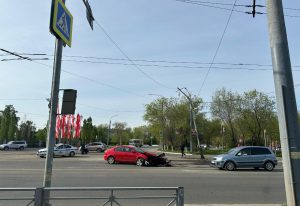 В Оренбурге на проспекте Победы автоледи врезалась в опору