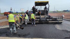 16 мая специалисты и техника подрядной организации ООО «Компания Орьтехцентр» выполняют работы по укладке верхнего слоя асфальтобетона на улице Александрова. Новую дорогу возводят в 19-м микрорайоне СВЖР Оренбурга на участке от улицы Высотной до улицы Карпова. Строительство осуществляется в рамках национального проекта «Инфраструктура для жизни». Фото: администрация Оренбурга...