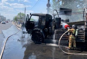 В Оренбурге на улице Пограничной сгорел «КамАЗ»