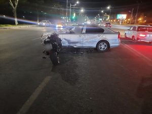 Авария произошла 1 июня около полуночи на перекрестке улицы Мира и проспекта Гагарина. 39-летняя женщина-водитель автомобиля Skoda Octavia совершала разворот (разворот запрещён, — прим. пресс-службы УМВД), и в этот момент в легковушку врезался мотоцикл Kawasaki. 38-летнего мотоциклиста госпитализировали. Фото: пресс-служба УМВД России по Оренбургской области...