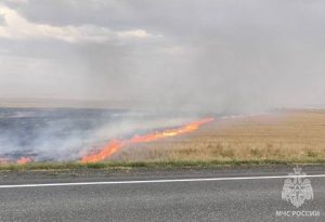 В Оренбургской области тушат крупный степной пожар