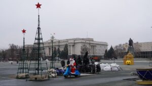 В центре Оренбурга началось обустройство Новогоднего городка