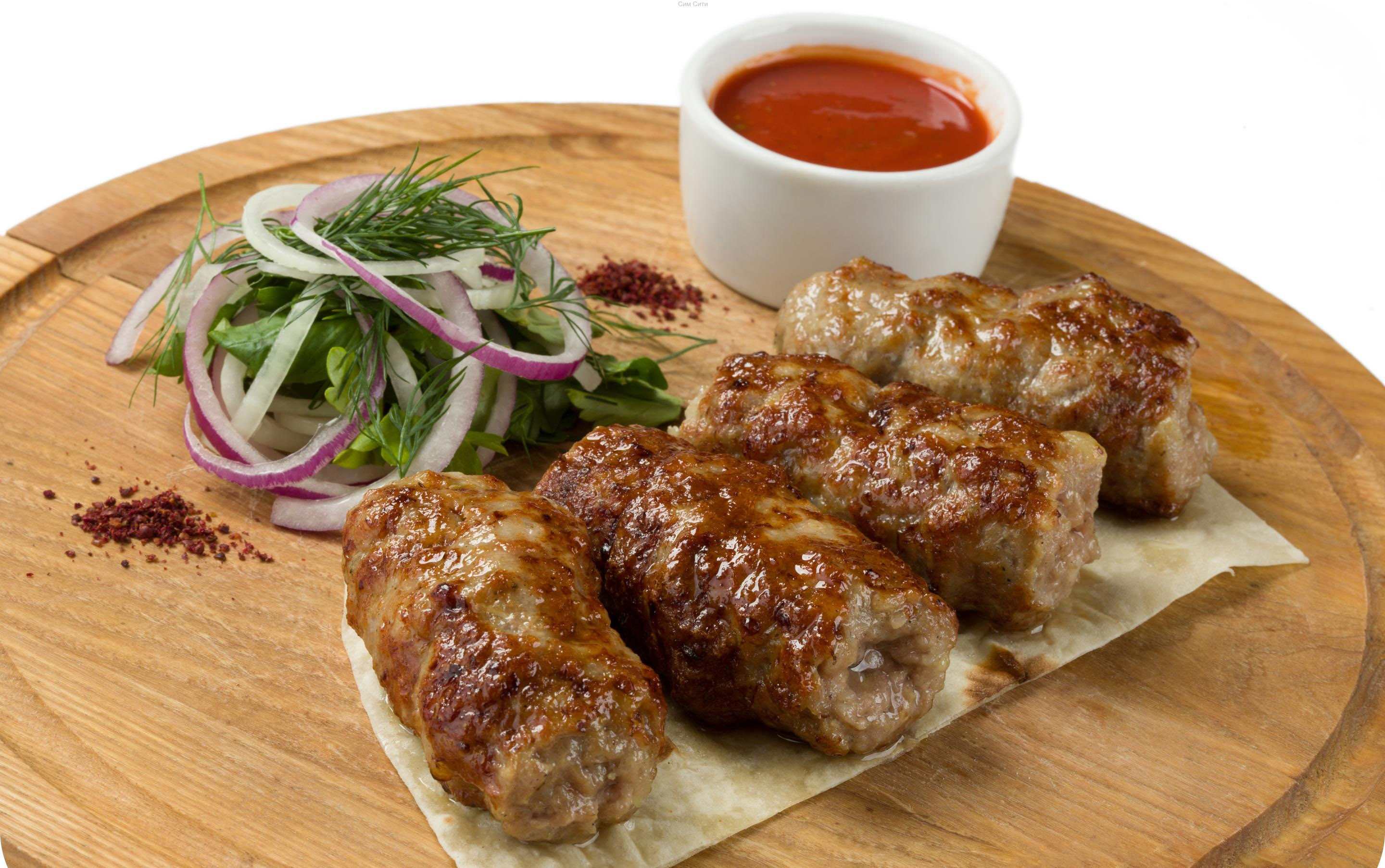 Популярное кавказское блюдо, которое представляет собой продолговатую котлету из фарша баранины, обжаренную на шампурах. Настоящий люля-кебаб готовится на раскаленных углях.