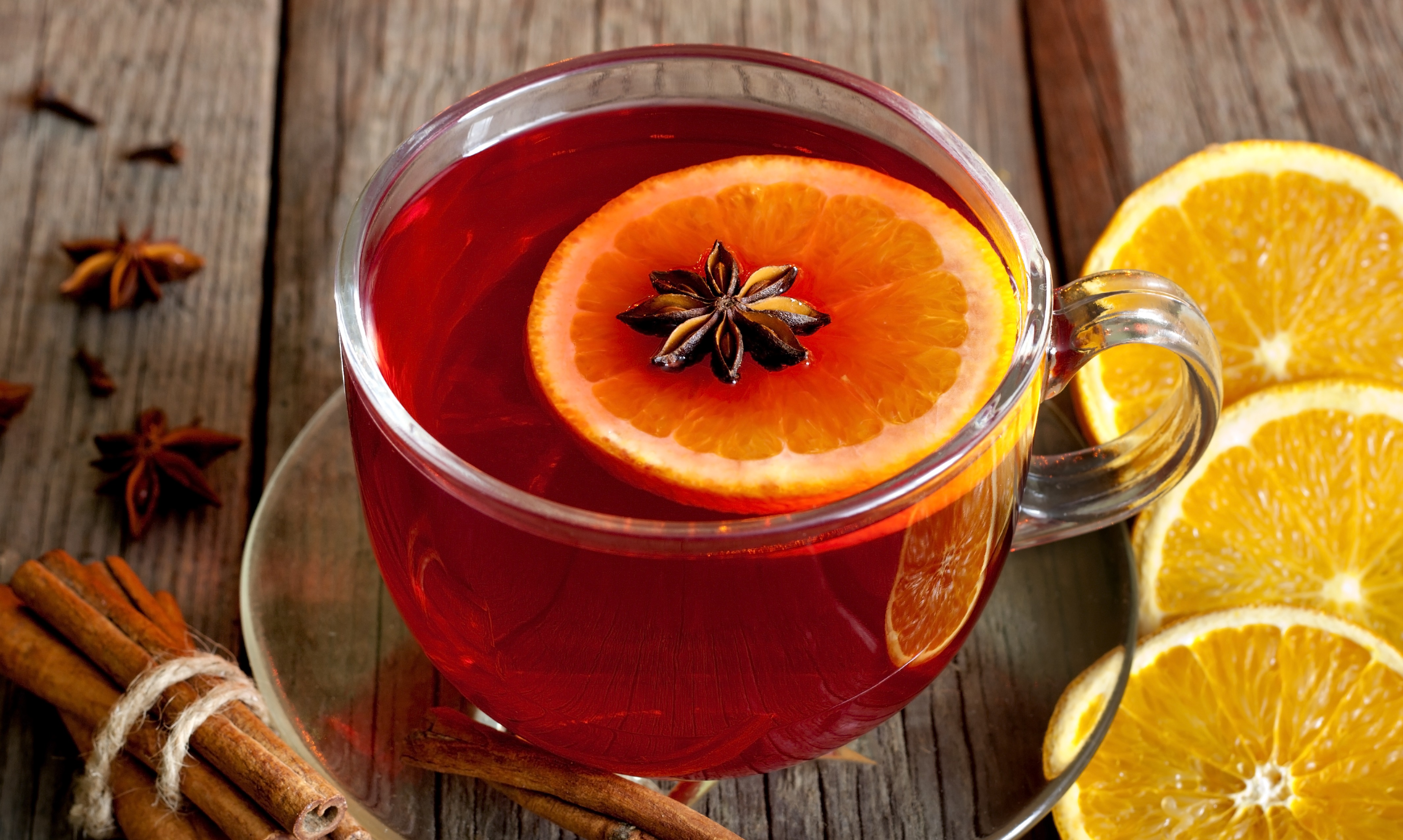 Вино довести до пузырькового кипения, добавить пряности. Варить на малом огне 7 – 10 минут, добавить цедру апельсина. В последний момент влить коньяк. Подать горячим.