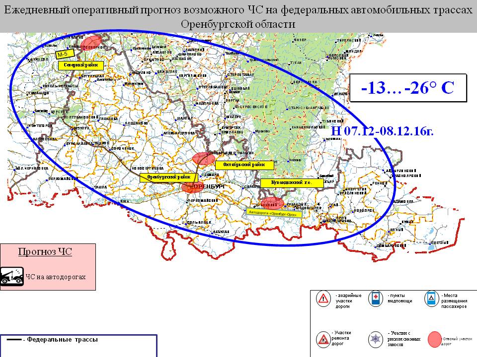ГУ МЧС по Оренбургской области подготовило список участков трасс на территории региона, на которых в ближайшие сутки прогнозируется наиболее неблагоприятная дорожная ситуация. Об этом сообщили в пресс-службе ведомства.