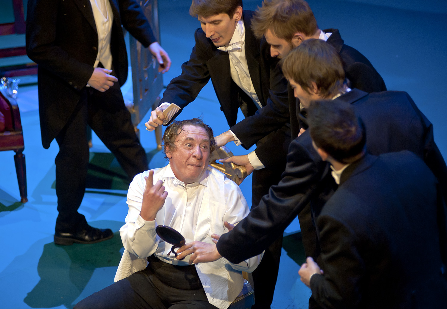 А вот обилие слуг, которые в нужный момент и рабочие сцены, и скоморохи, и олицетворение пороков, не всегда кажется уместным. В какой-то момент они закрывают главных героев, на сцене кажется тесно.