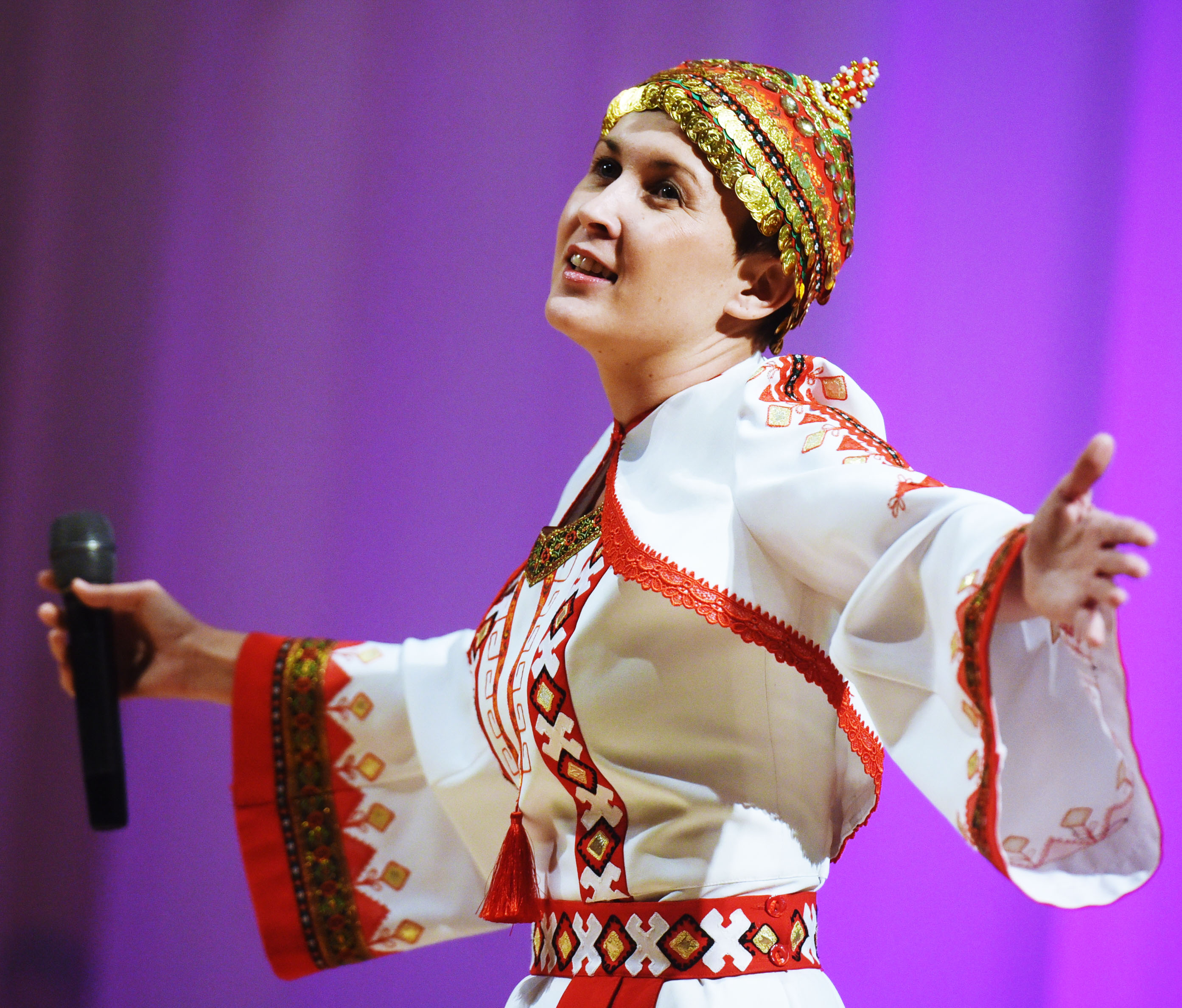 Тем временем на сцену за наградой поднимается Алла Зыряева из Орска. Алла Леонидовна – русская, руководит казахским фольклорным ансамблем «Шашу».
