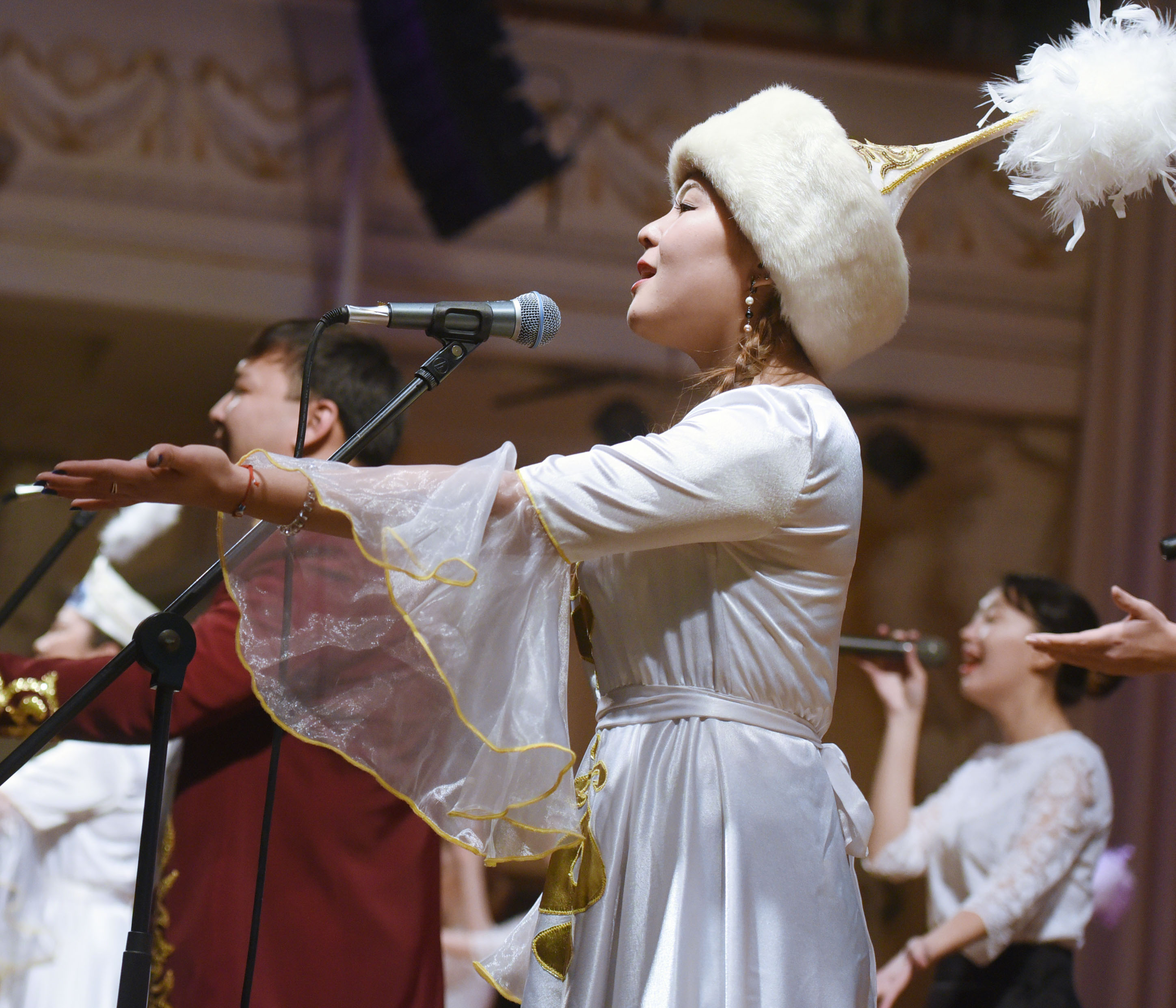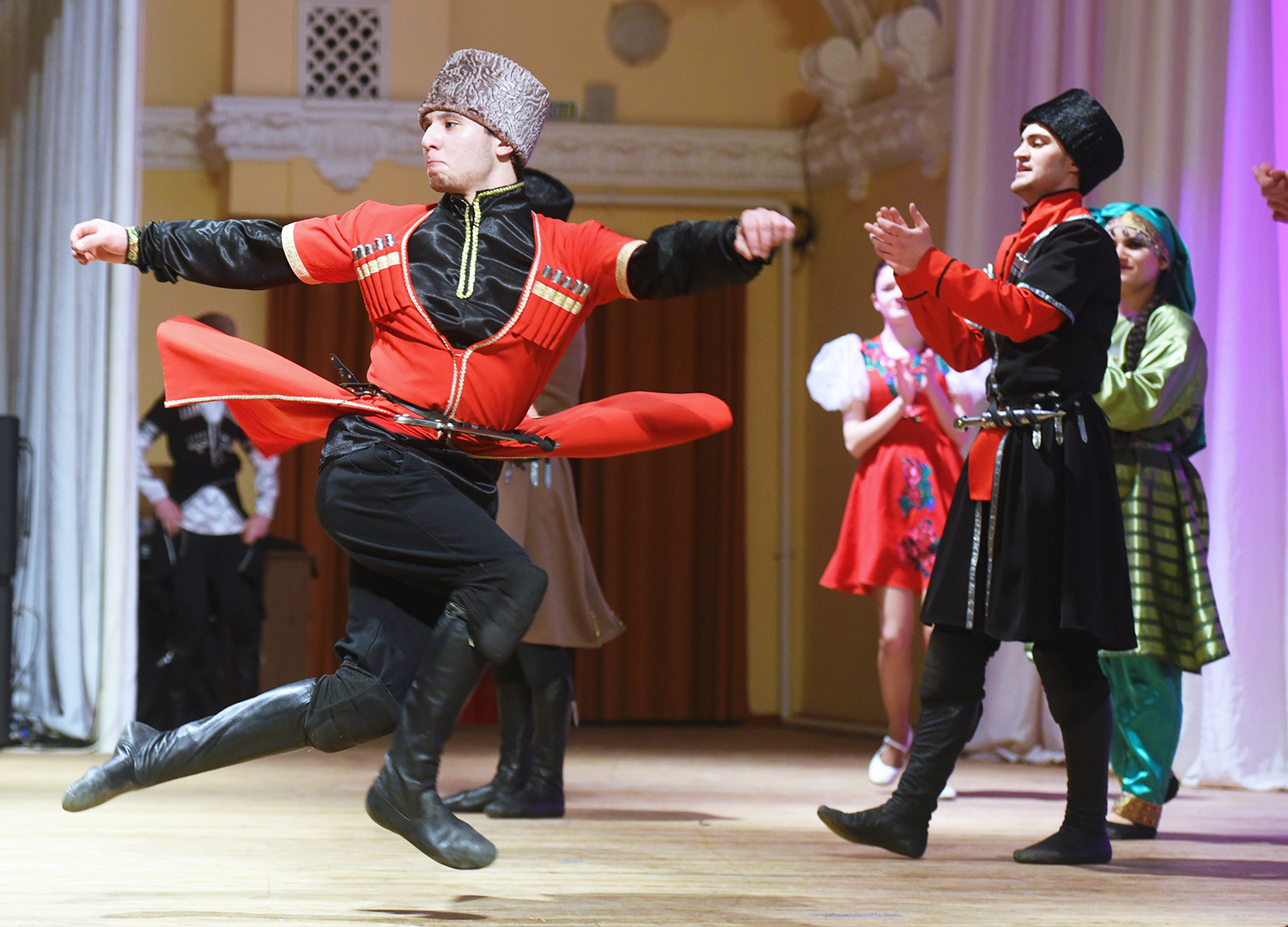 Дипломы и цветы вручены, на сцене идёт концерт: ритм лезгинки сменяет «Хава нагила», затем грустная армянская песня. И стар и млад, в тюбетейках, кокошниках, саукеле, сороках, толпятся за кулисами, ожидая своей очереди выхода на сцену.