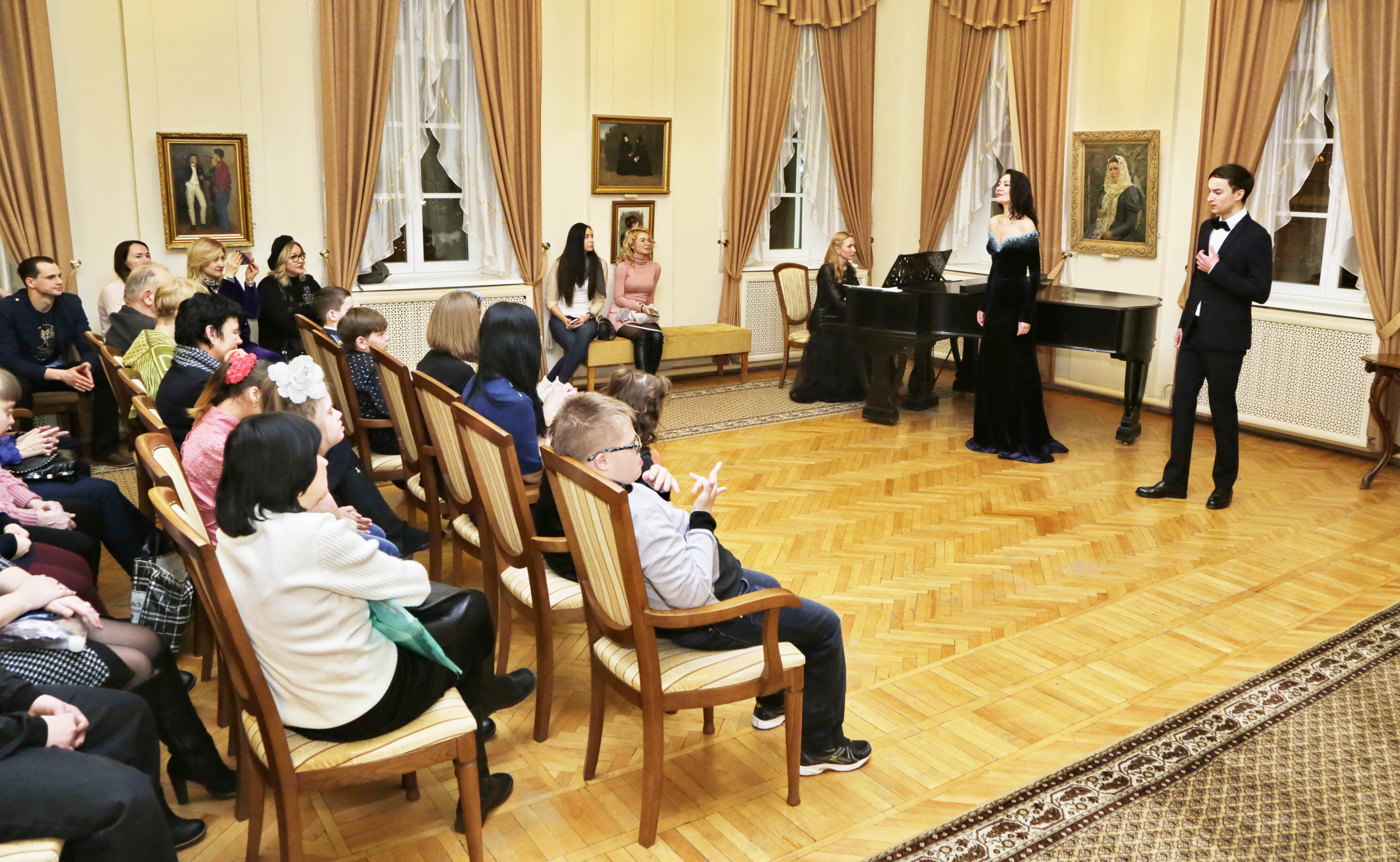 Нарядные, с причёсками, эти дети внешне почти ничем не отличаются от обычных ребят. В зале с полотнами Лукиана Попова заканчивается исполнение арии из оперы Моцарта «Дон Жуан», и две девочки во втором ряду звонко хлопают в ладоши, обнимаются и расцеловывают друг друга в щёки. Музыканты улыбаются им в ответ.