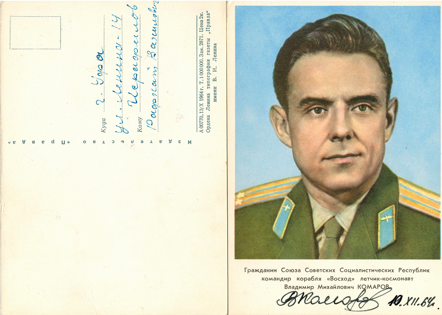 Дочь лётчика-космонавта, Дважды Героя Советского союза Владимира Комарова передала в Музей космонавтики 18 открыток.