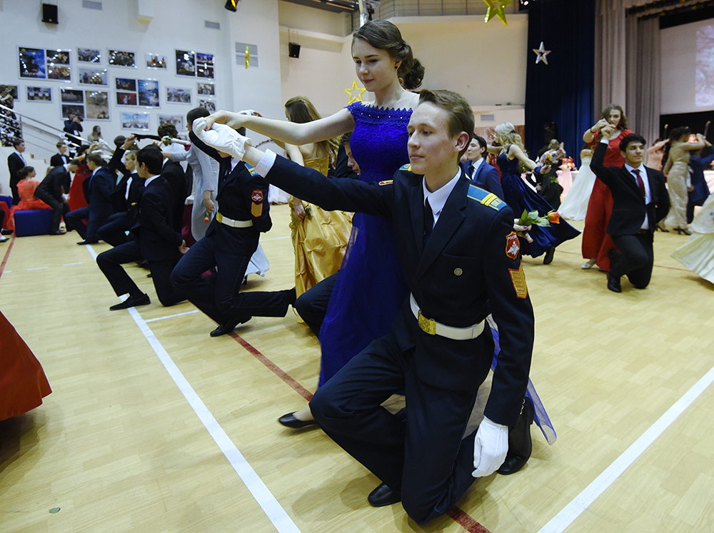 Под «Вальс цветов» Чайковского концертный зал Оренбургского президентского кадетского училища наполняется парами. Красивые, счастливые юноши и девушки кружатся в бальном танце.