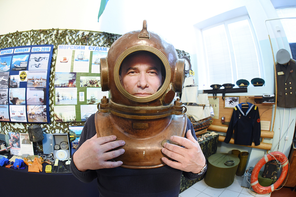 Сам Приказчиков, судя по всему, преклоняется перед морем. Есть в музее макет русского парусника, есть водолазный костюм 1959 года выпуска. Между прочим, вес такого костюма – 82 килограмма. И есть занятная история. Пётр I приехал в Архангельск строить верфь, поморы спросили: «Большой ли корабль хочешь строить?» Царь ответил, что 10 – 12 саженей. «Так то не корабль, то лодка», – ответили поморы.